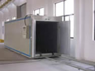 流水線烘道工作原理: 電加熱平板線烘道采用加熱管外置式加熱,將電能轉化為熱能,熱量經低噪音高壓風機吹入進風道,傳入箱內,形成熱風循環, 箱體設有對流攪拌技術,溫度非常均勻,具有自動控溫,調速,故障報警等特點,使用安全,方便,環保,節能等優點。